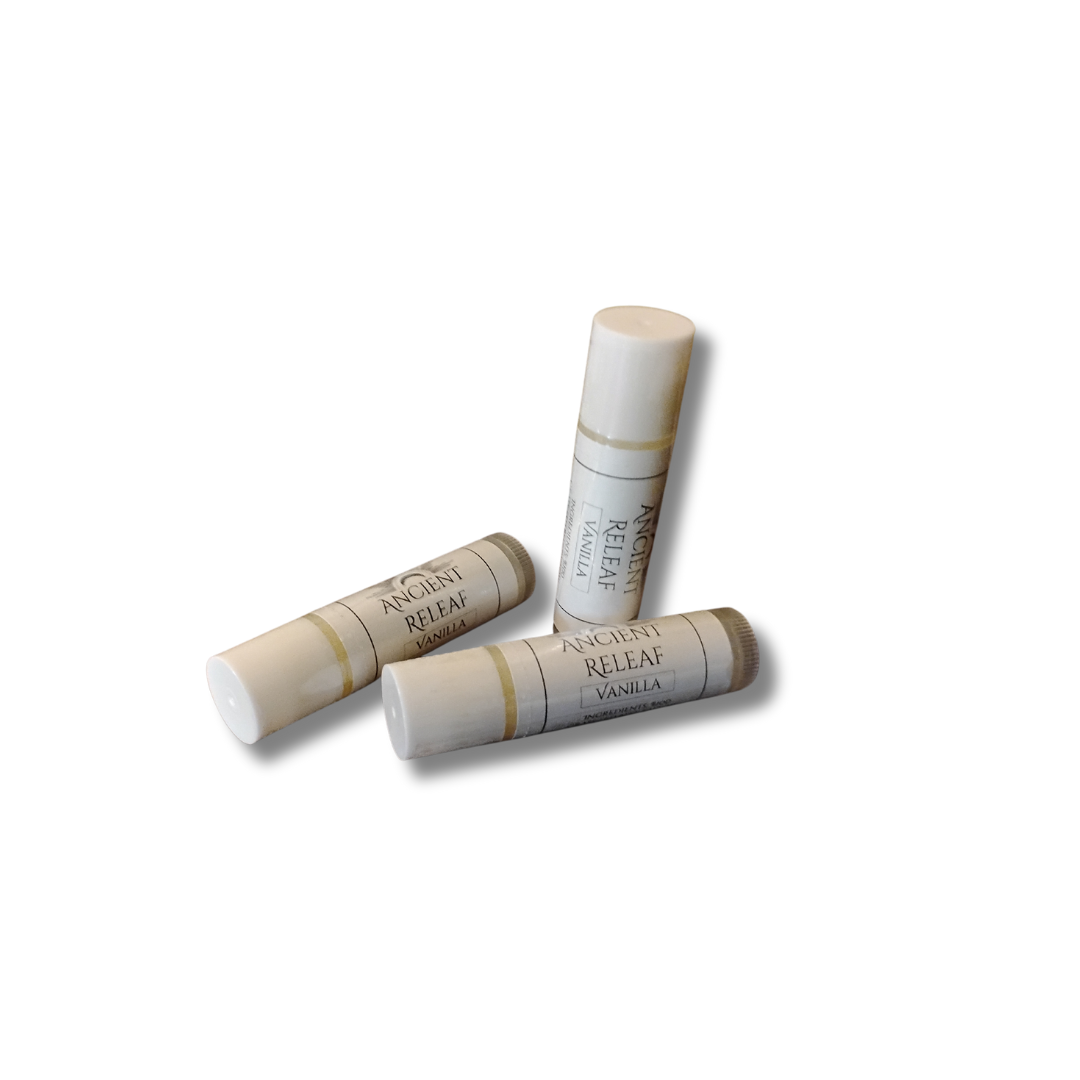 Ancient Releaf Tallow Lip Balm is enriched with a unique blend of ancient herbal teas, including Tepezcohuite. This soothing lip balm offers nourishing and soothing feel for cracked and chapped lips. Crafted from all-natural ingredients, using this lip balm can leave lips feeling soft, moisturized, and rejuvenated. ****The Vanilla 3 pack features three delightful lip balms.**** ****Vanilla Lip Balm Ingredients**** 100% Grass-fed beef Tallow, Natural Cocoa Butter, Organic Beeswax, Ancient Herbal Tea Blend with Tepezcohuite, 100% Natural Vanilla essential Oil.